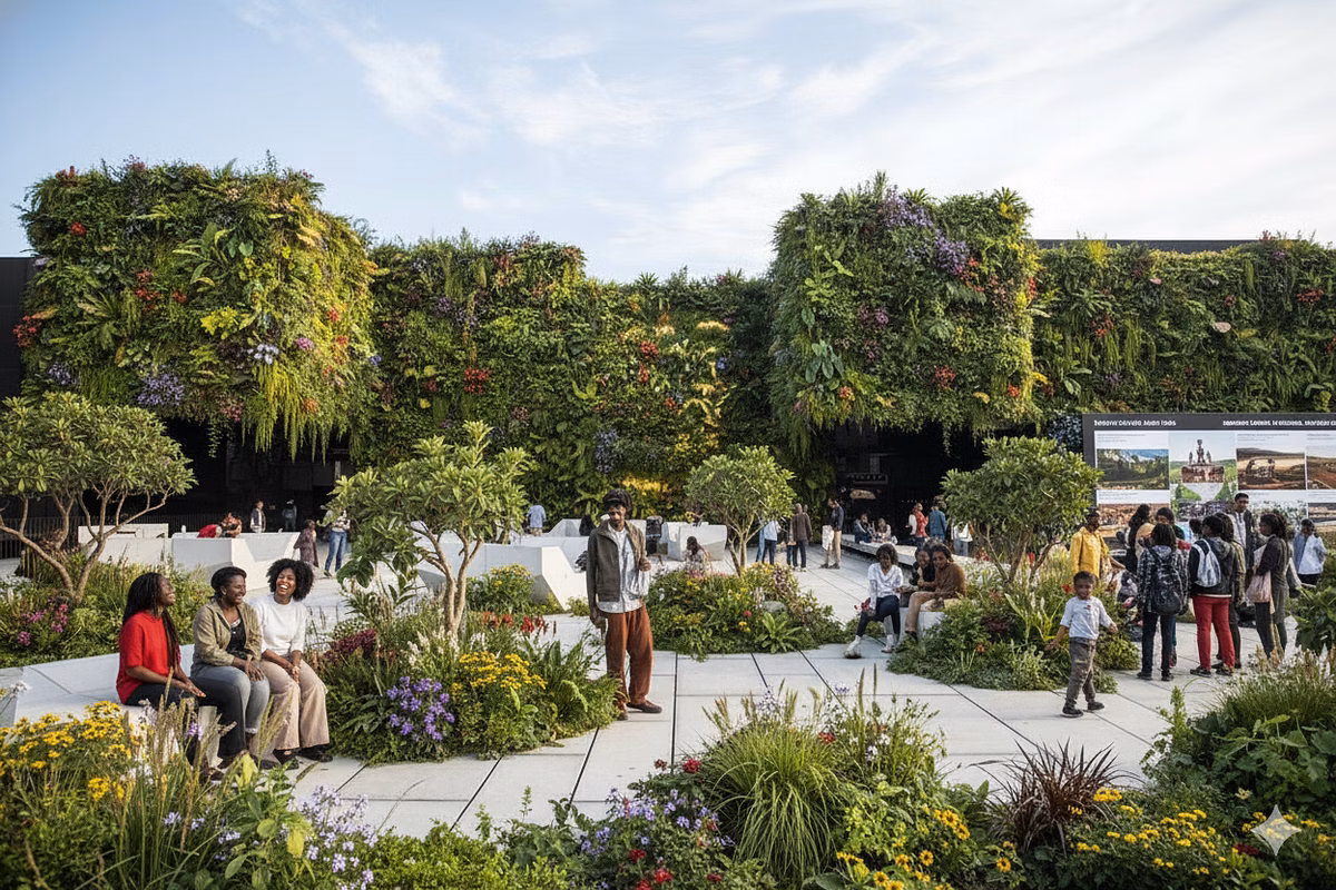 - Instalações interativas no espaço público que captam ideias e histórias da comunidade.